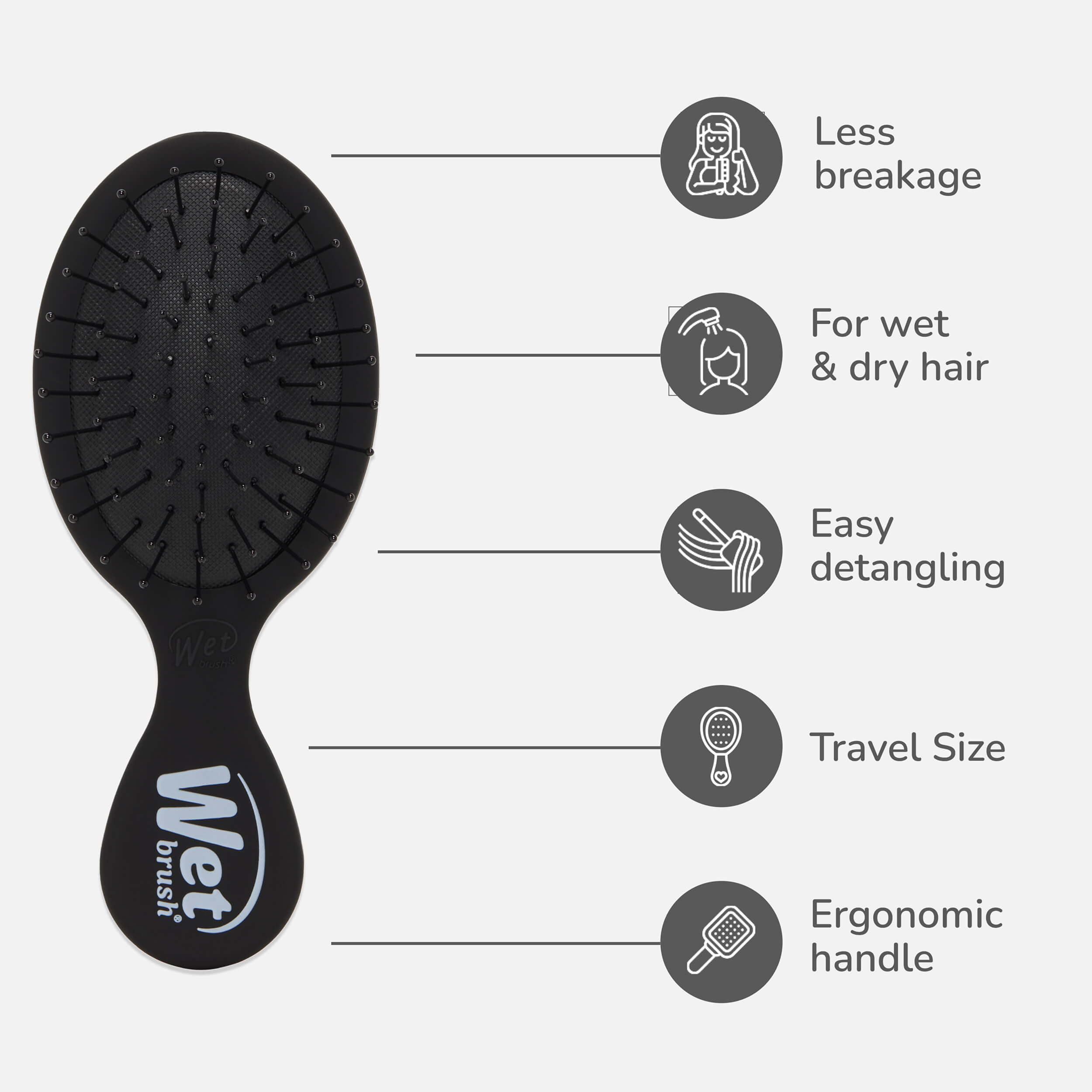 Small but mighty, the Mini Detangler delivers big results wherever life takes you. Crafted with exclusive IntelliFlex® bristles, it gently loosens knots and tangles for up to 55% less breakage*—with less pulling and less snagging for a smoother detangling experience.