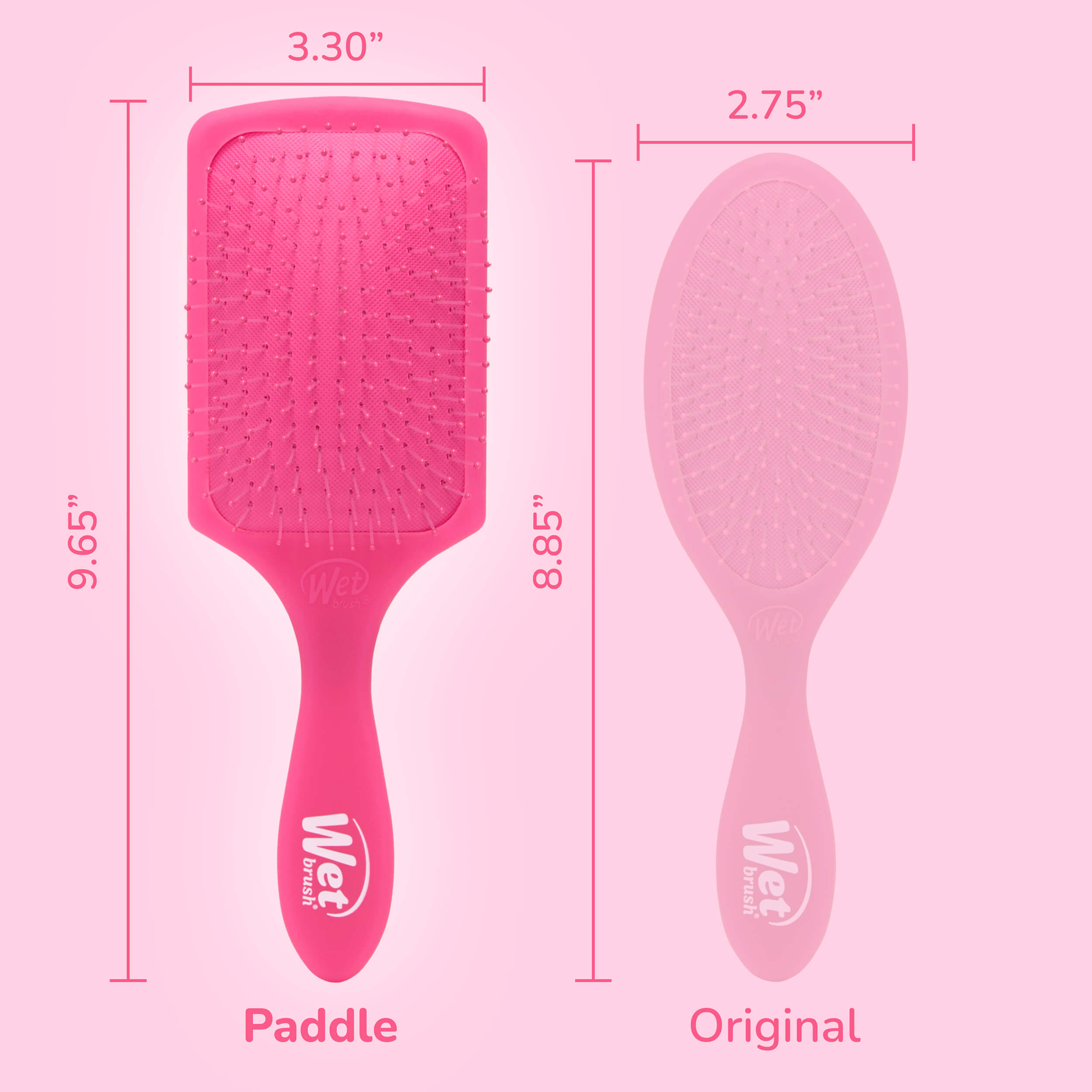 • Larger paddle design detangles more hair at once