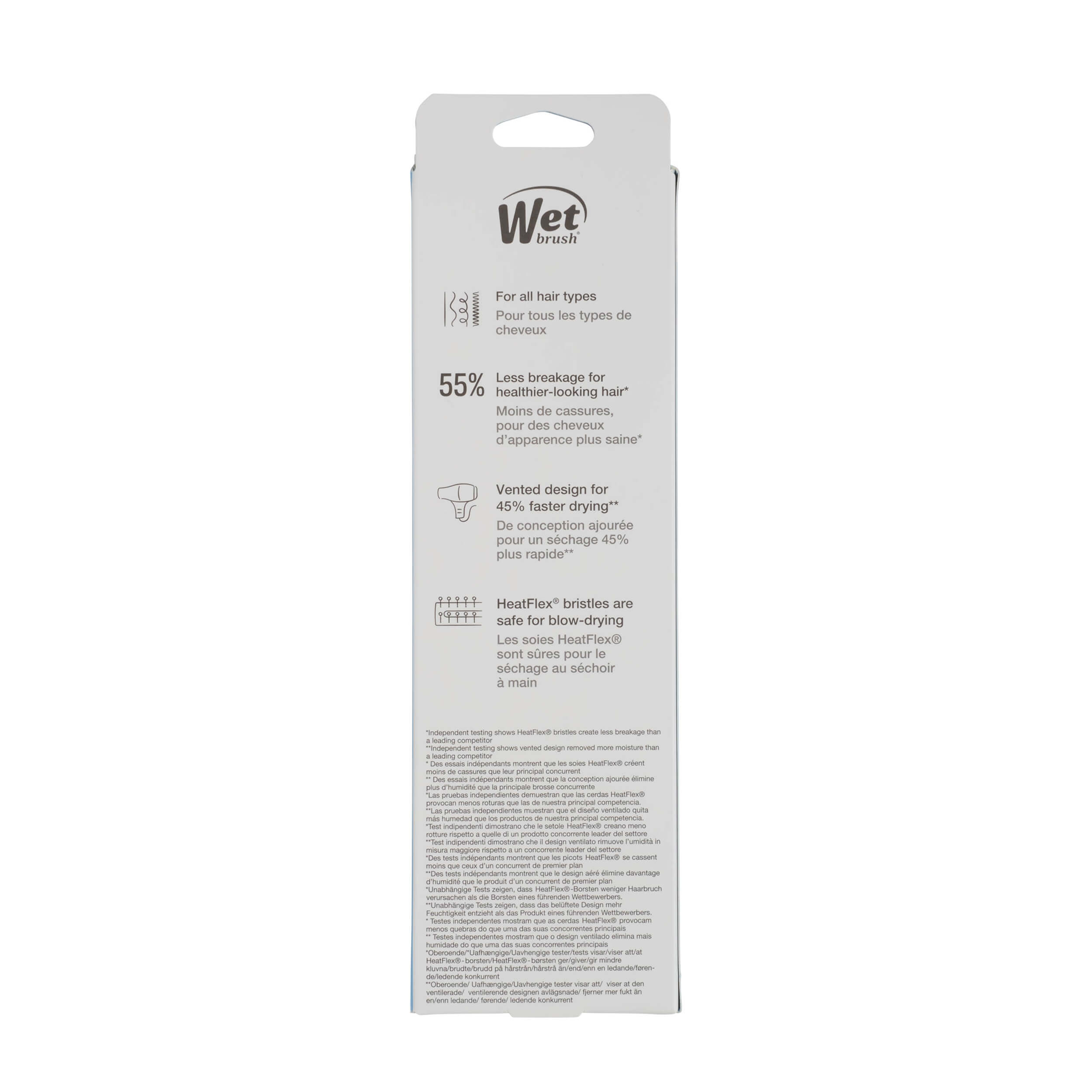Featuring HeatFlex® bristles that are blow-dry safe, it gently glides through strands with less pulling and snagging—helping reduce breakage for a smooth, shiny finish. Designed for all hair types, it works on wet or dry hair for quick, easy styling.