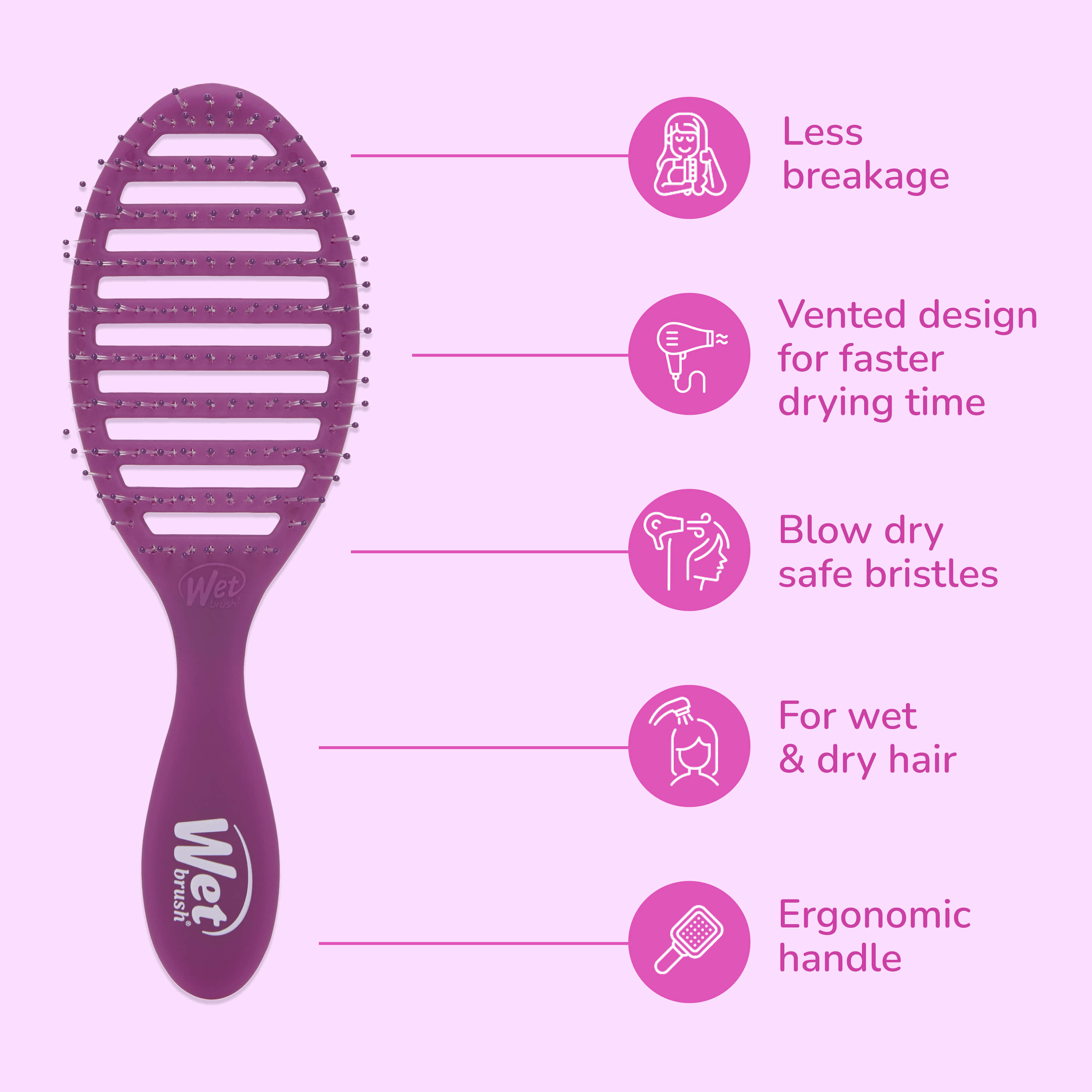Meet the Speed Dry, the brush that helps reduce drying time and minimize heat exposure for smoother, healthier-looking hair. Its vented design allows moisture to escape, helping hair dry up to 45% faster* while reducing the risk of damage from prolonged blow-drying.