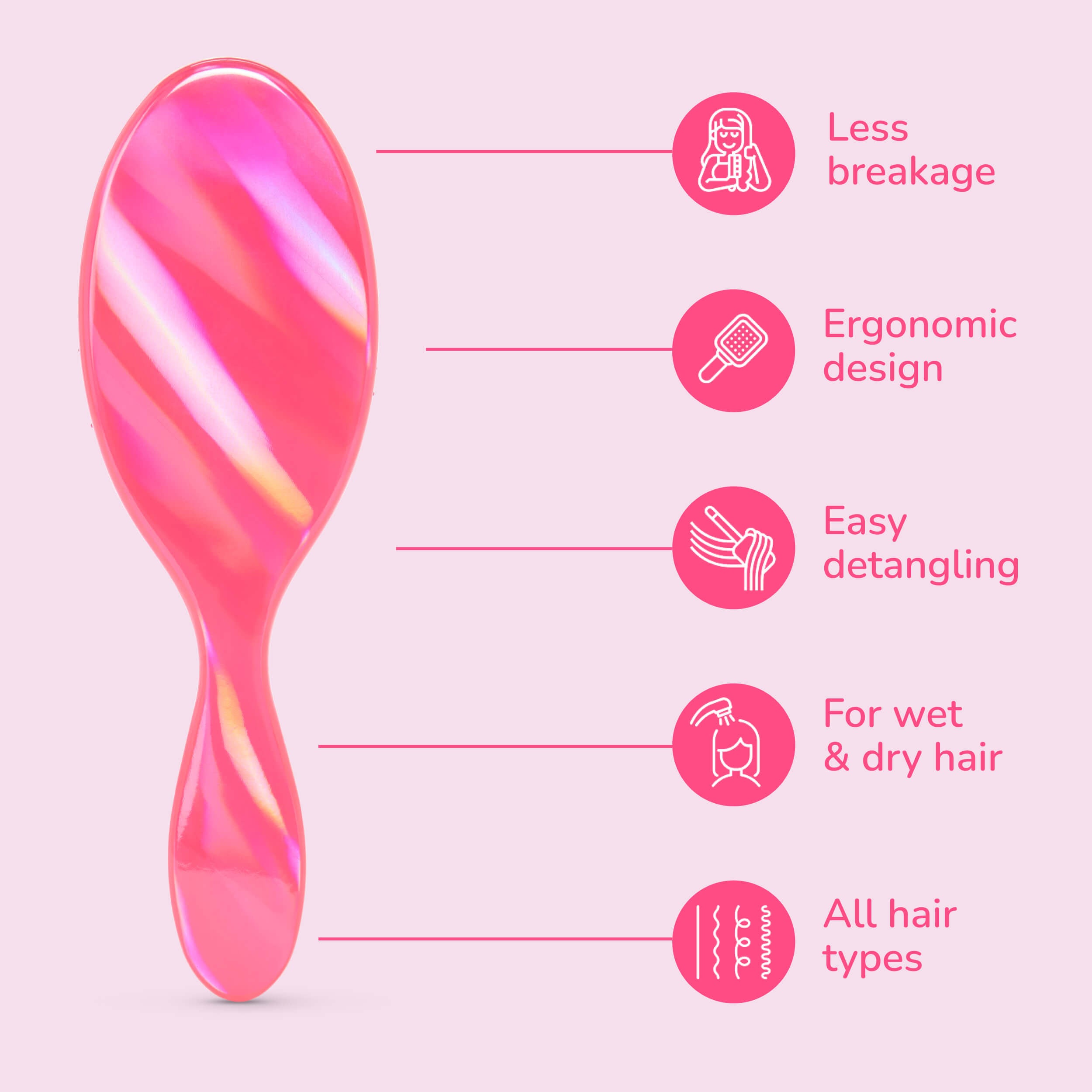 Perfect for all hair types: straight, wavy, curly, or textured! This brush works wherever you need it: after a shower, during styling, or on the go. Its lightweight design makes it easy to take anywhere for effortless detangling anytime.