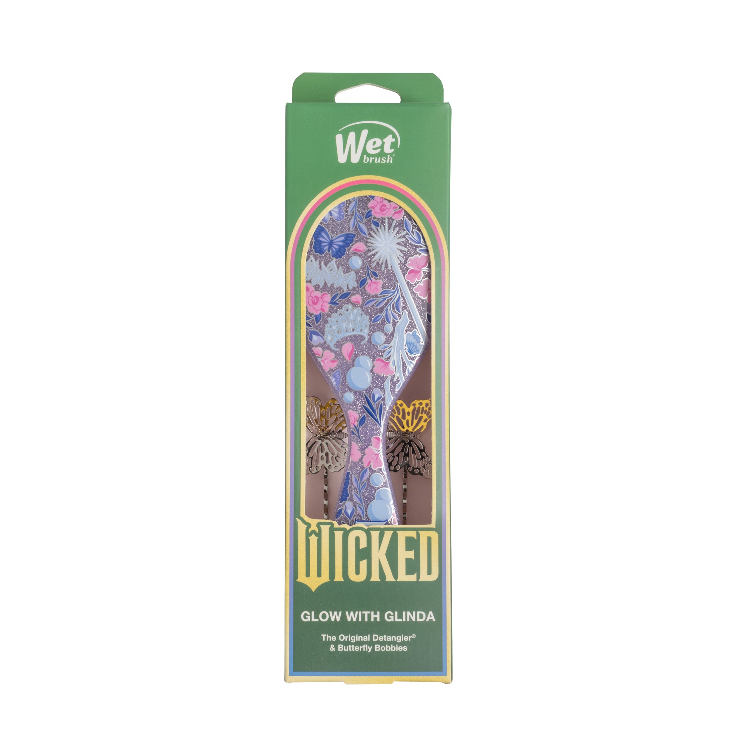 Shine bright with the Wet Brush x Universal Wicked Detangle and Style Kit – Glinda. Inspired by Glinda’s charm, grace, and sparkling personality, this limited-edition set pairs our award-winning Original Detangler® with delicate butterfly bobbie pins—the perfect finishing touch for any look that glows.