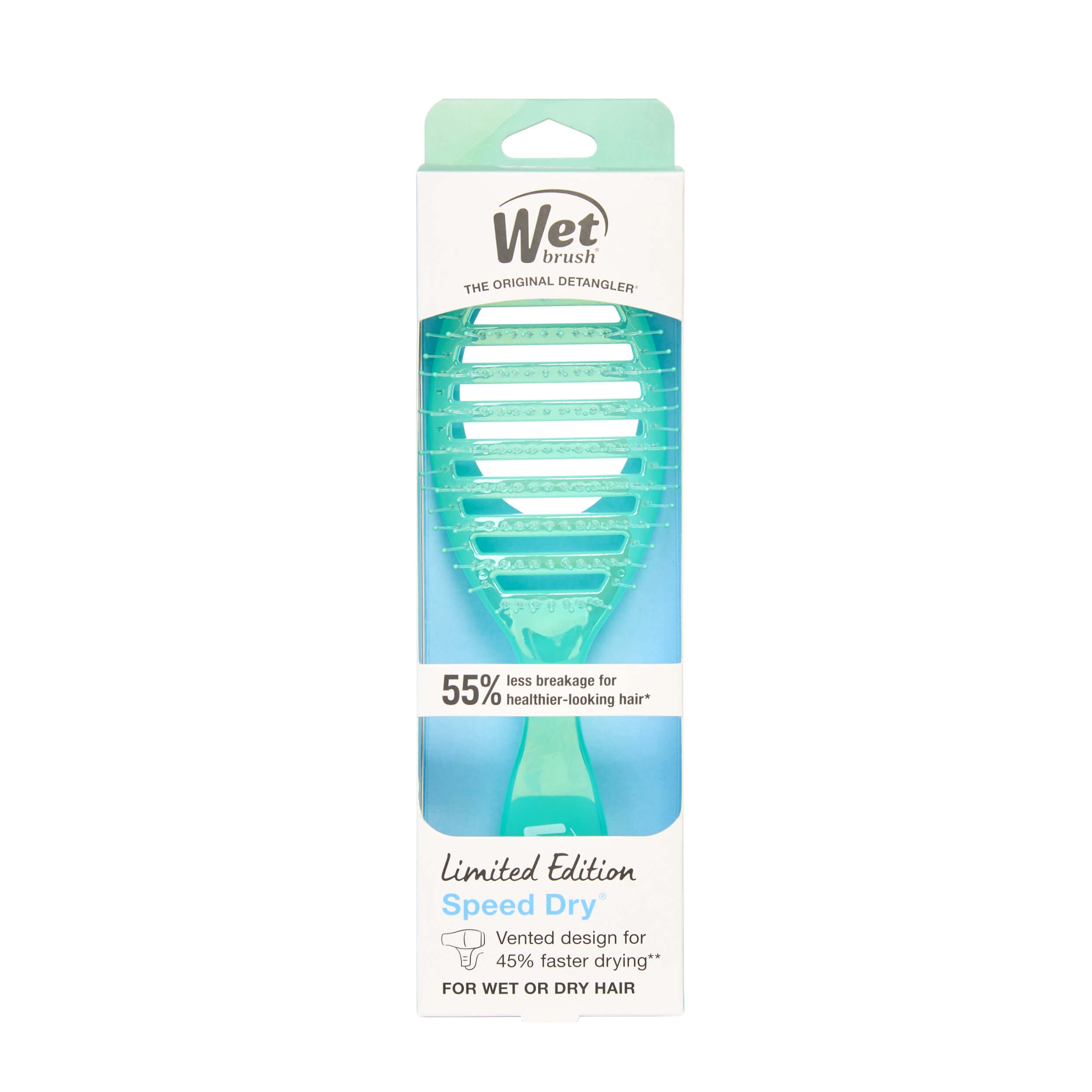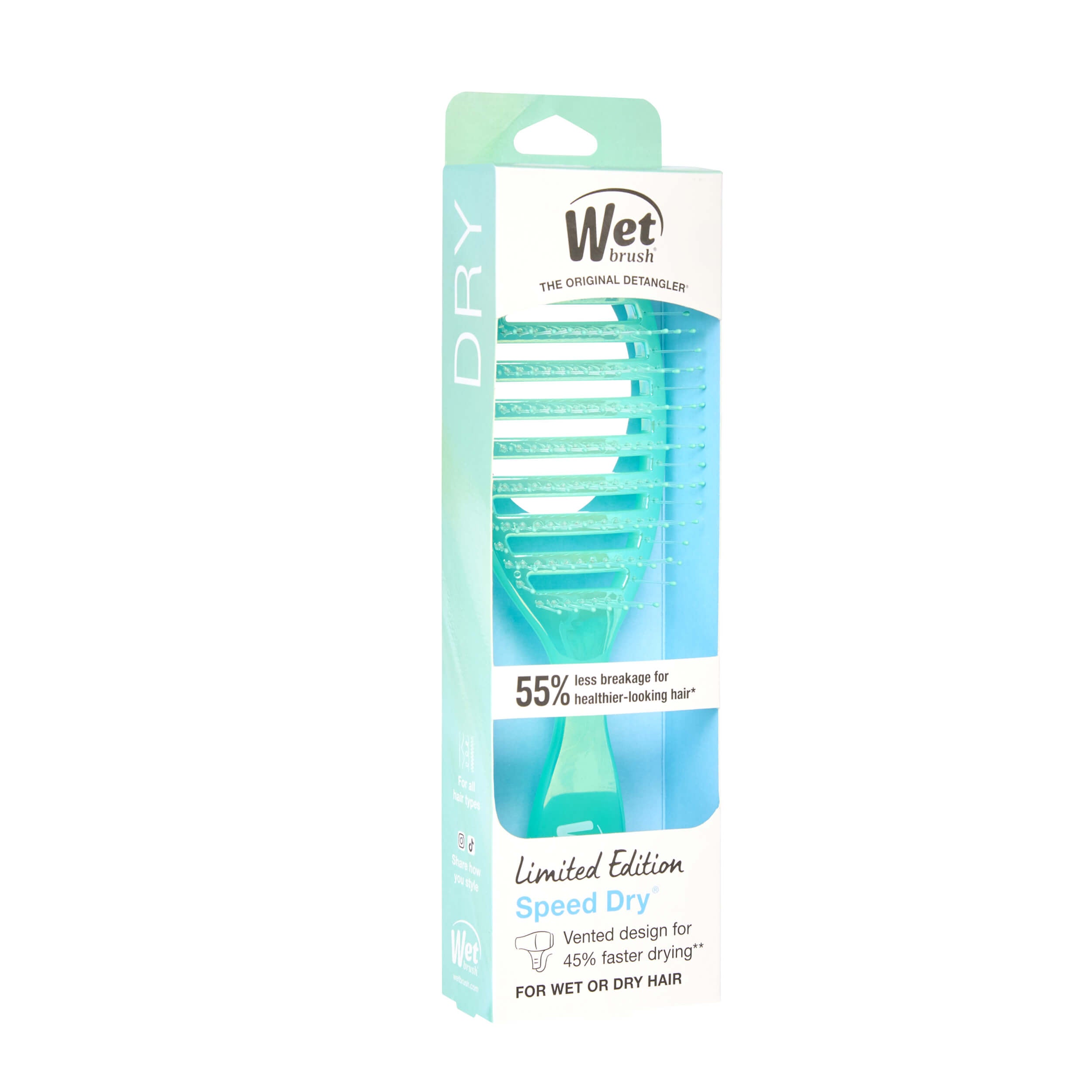 The Speed Dry is engineered for performance with an open vented design that allows moisture to escape quickly, helping reduce drying time by up to 45%*. HeatFlex® heat-resistant bristles glide through knots and tangles while blow drying, ensuring smooth, damage-free styling**. Designed to minimize breakage by up to 55%†, this brush helps keep hair healthier-looking.