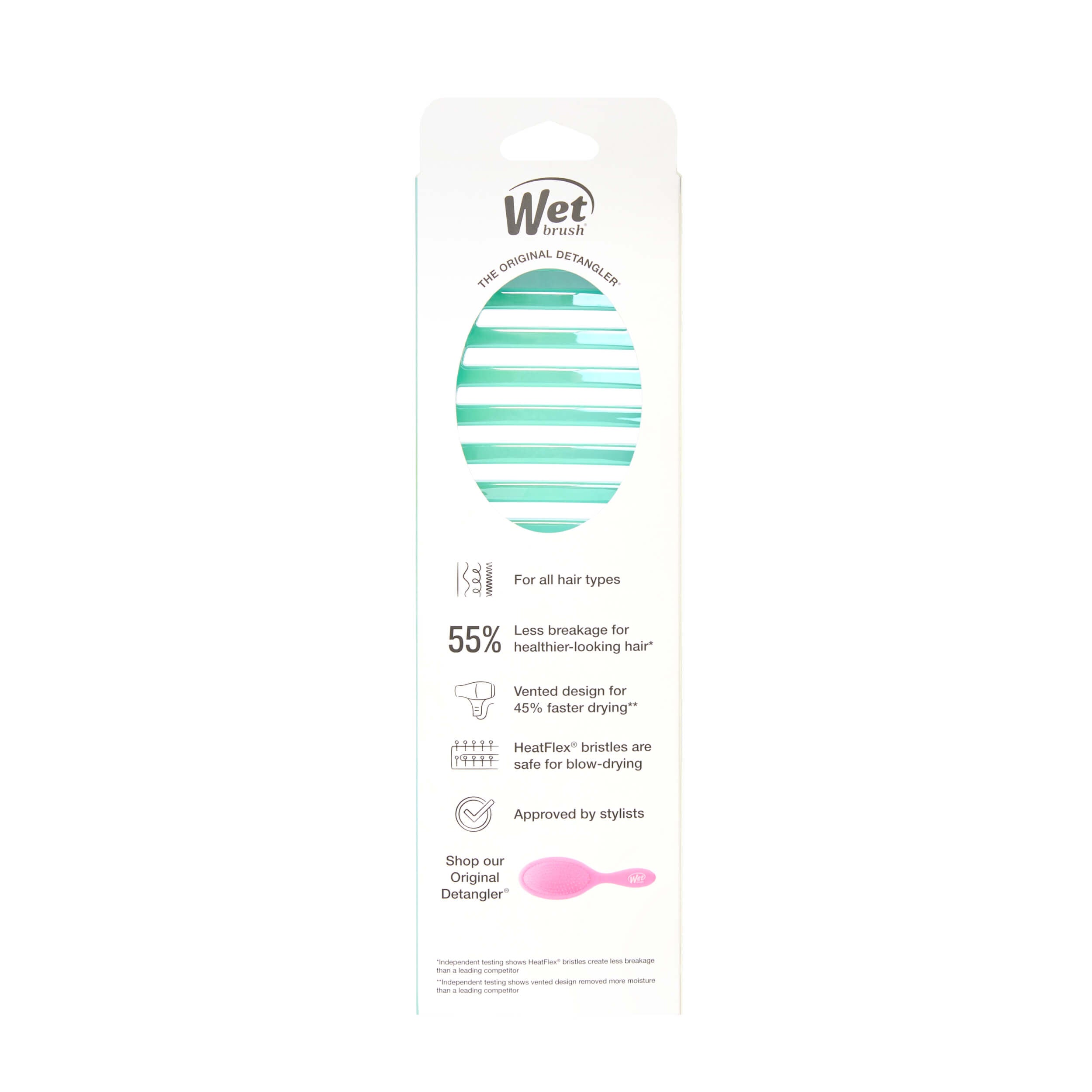 †Independent testing shows IntelliFlex® bristles create less breakage than a leading competitor. Results may vary based on hair type.