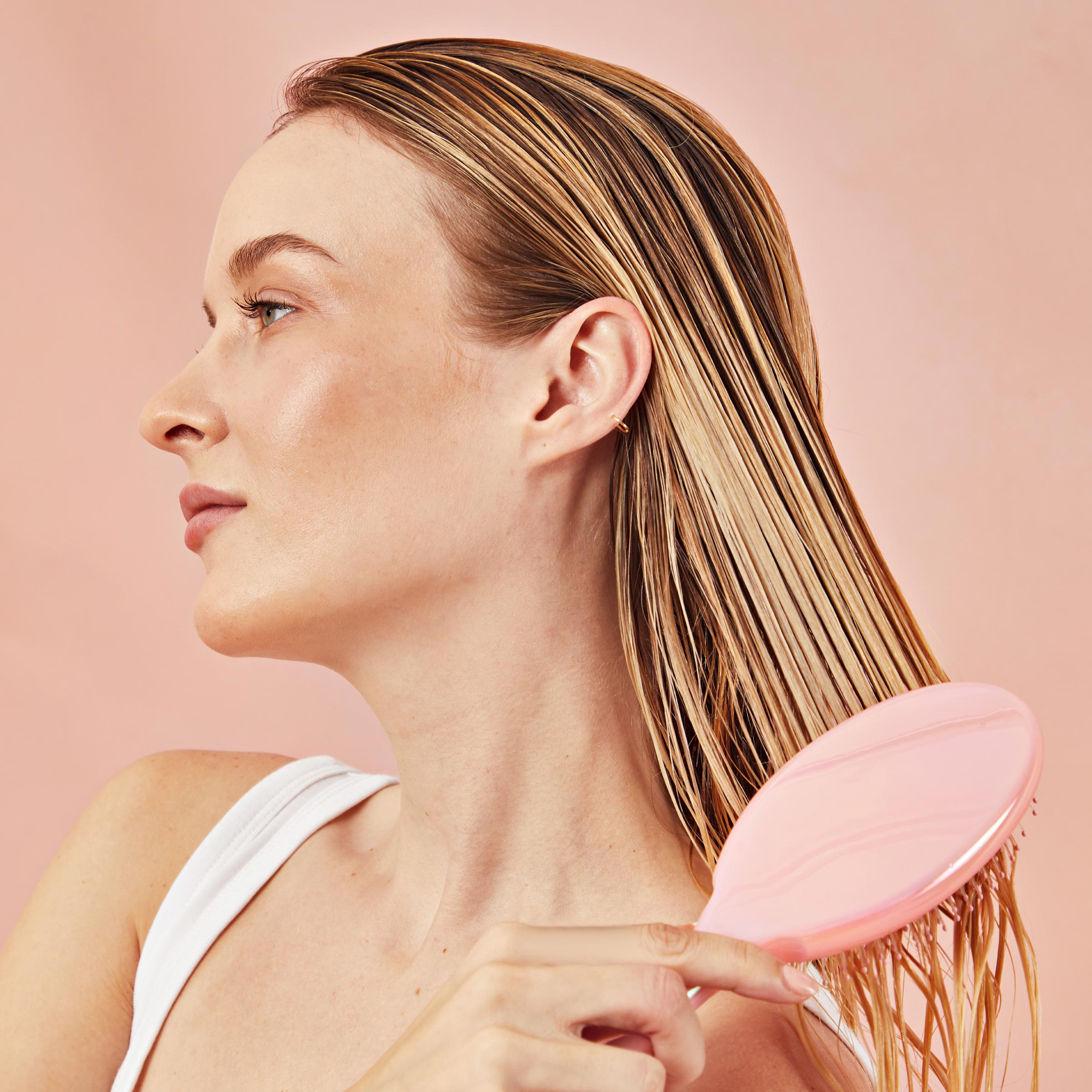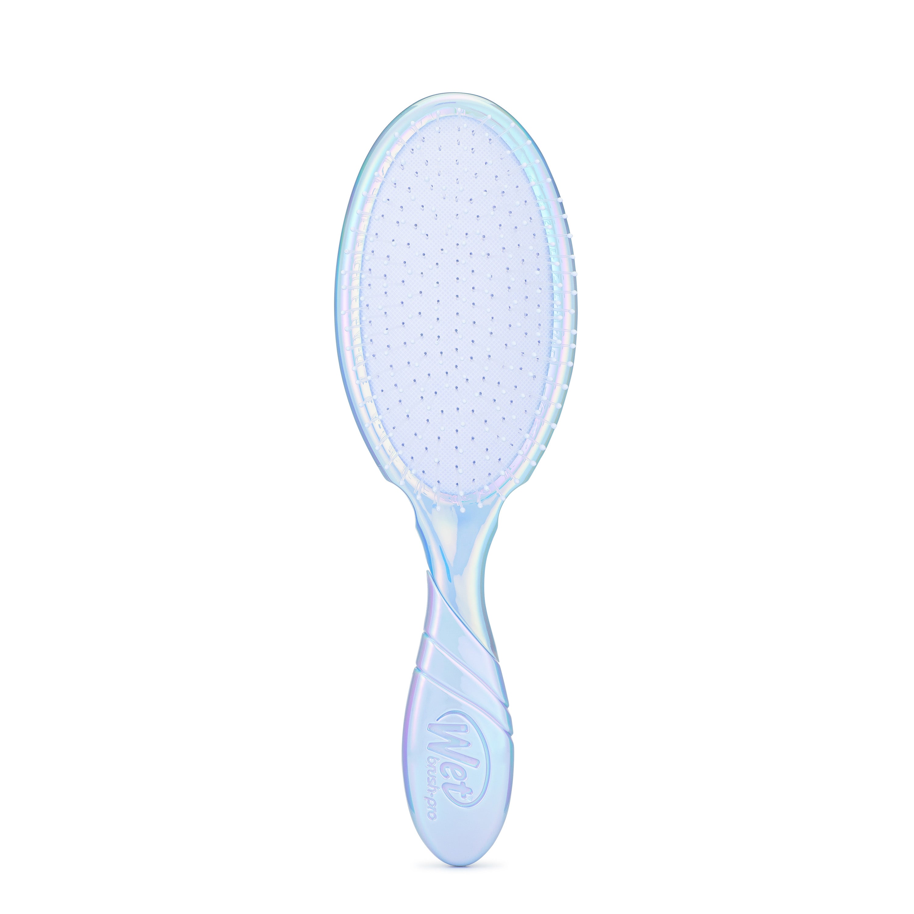 Meet your hair's partner in shine. The Limited Edition Detangler from our Hello Holographic collection features an iridescent, light-reflecting finish and enhanced brush design. Designed and used by stylists, this high-performance brush includes ultra-soft IntelliFlex® bristles for over 45% less breakage, ergonomically advanced finger rests for a comfortable hold, and a rubberized, EasyGrip™ handle for more control even when hands are wet.